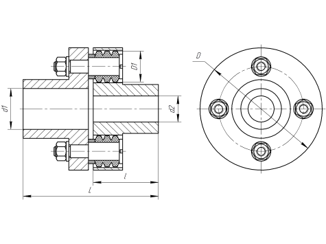 Elastic-bushed stud clutches (MUVP) are simple and, respectively, cheap type of couplings. However, their use is limited due to low compensating properties., relatively high loads on the connected shafts, limited resource elastomer bushings, impossibility of explosive use- fire hazardous areas.